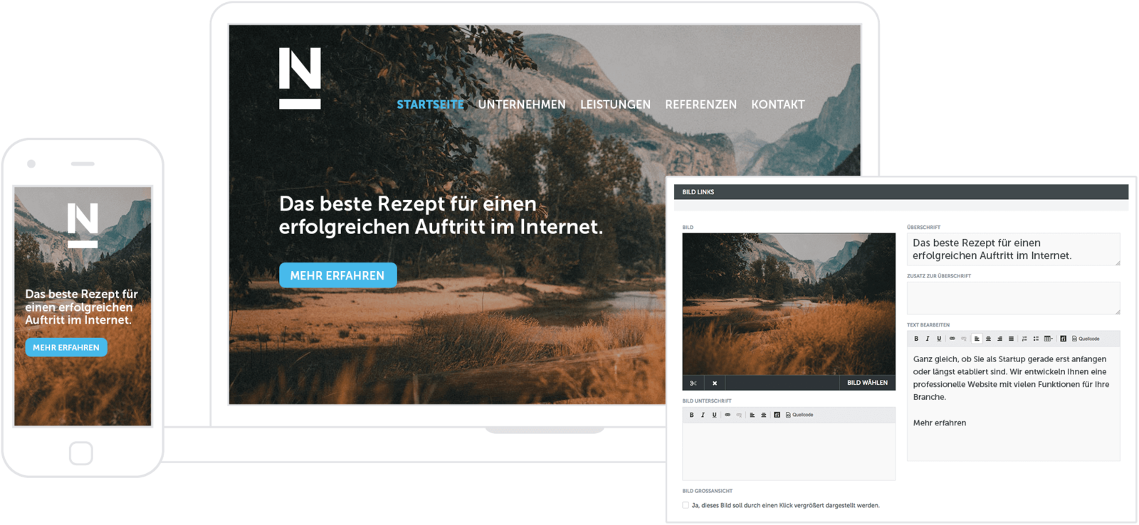 Der richtige Auftritt entscheidet über Ihren Erfolg im Internet. Mit NETZCOCKTAIL erhalten Sie eine Website, deren Inhalte sich automatisch an die Bildschirmauflösung mobiler Endgeräte wie Tablets und Smartphones anpassen. Und dank automatisierter Pagespeed-Optimierung laden Ihre Inhalte besonders schnell.