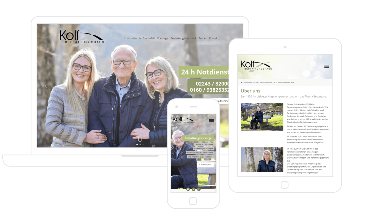 Für die Projektumsetzung hat sich das Bestattungshaus Kolf für folgende NETZCOCKTAIL-Leistungen und -Module entschieden: