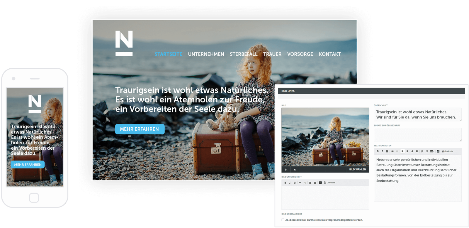 Ganz gleich, ob Sie als Unternehmensgründer gerade erst anfangen oder längst etabliert sind. Mit unseren vielseitigen Web-Services für Bestattungsunternehmen entwickeln wir Ihnen zunächst eine professionelle Website, deren Inhalte Sie eigenständig mithilfe eines CMS bearbeiten können.