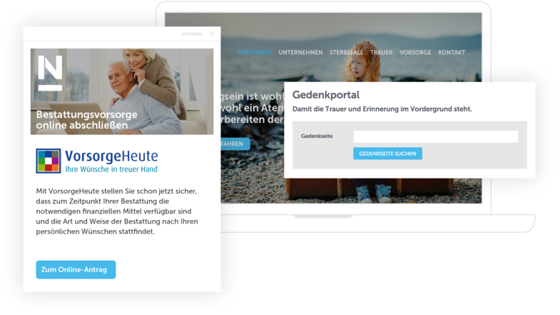 Von der Willenerklärung, über die Integration von VorsorgeHeute bis hin zum Online-Kondolenzportal von NETZCOCKTAIL. Unsere Marketing-Werkzeuge für Bestatter unterstützen Sie in der Kundengewinnung und -bindung.