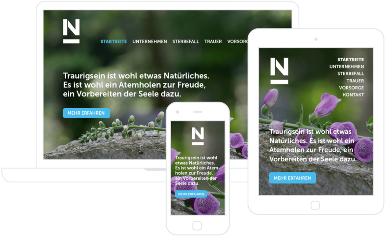 Mit NETZCOCKTAIL erhalten Sie eine Bestatter-Website, deren Inhalte sich automatisch an die Bildschirmauflösung mobiler Endgeräte wie Tablets und Smartphones anpassen. Damit bieten Sie allen Besuchern, die sich für Ihre Leistungen vor, während oder nach einem Todesfall interessieren, ein wertvolles Service- und Informationsmedium auf allen Endgeräten.