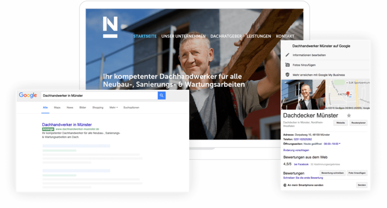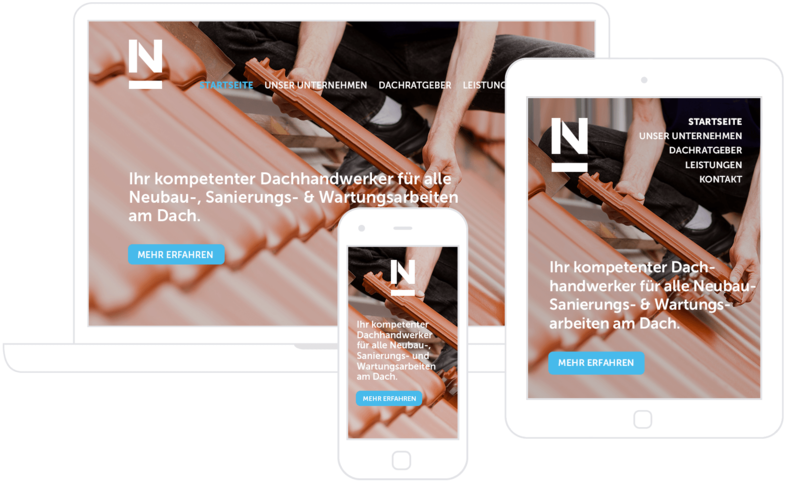 Der richtige Auftritt entscheidet über Ihren Erfolg im Internet. Mit NETZCOCKTAIL erhalten Sie eine Website, speziell für Dachhandwerker, deren Inhalte sich automatisch an die Bildschirmauflösung mobiler Endgeräte wie Tablets und Smartphones anpassen. Und dank automatisierter Pagespeed-Optimierung laden Ihre Inhalte besonders schnell.