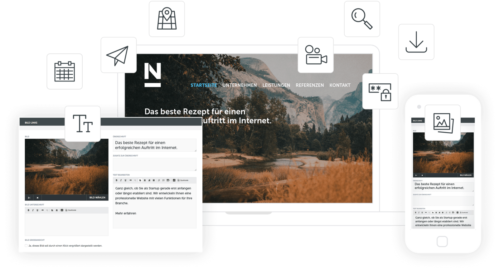 Das Content-Management-System von NETZCOCKTAIL verfügt über zahlreiche Funktionen, die es Ihnen ermöglichen, Ihren Internetauftritt jederzeit selbst zu bearbeiten – bequem von zu Hause aus am Computer oder unterwegs auf Ihrem Smartphone.