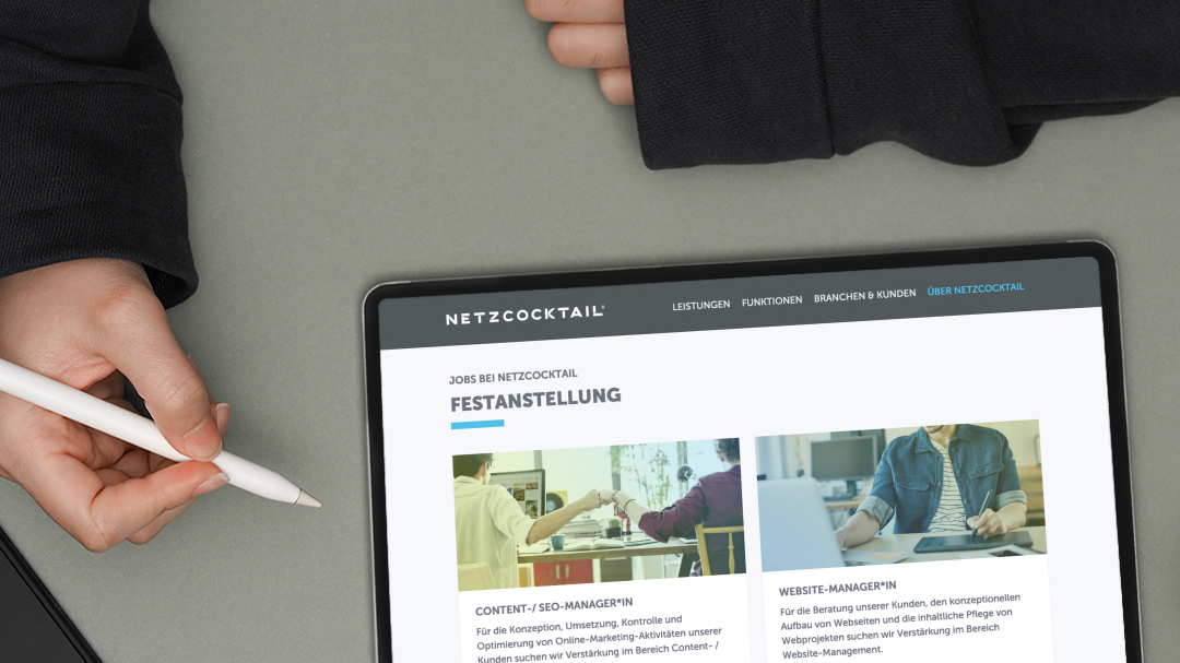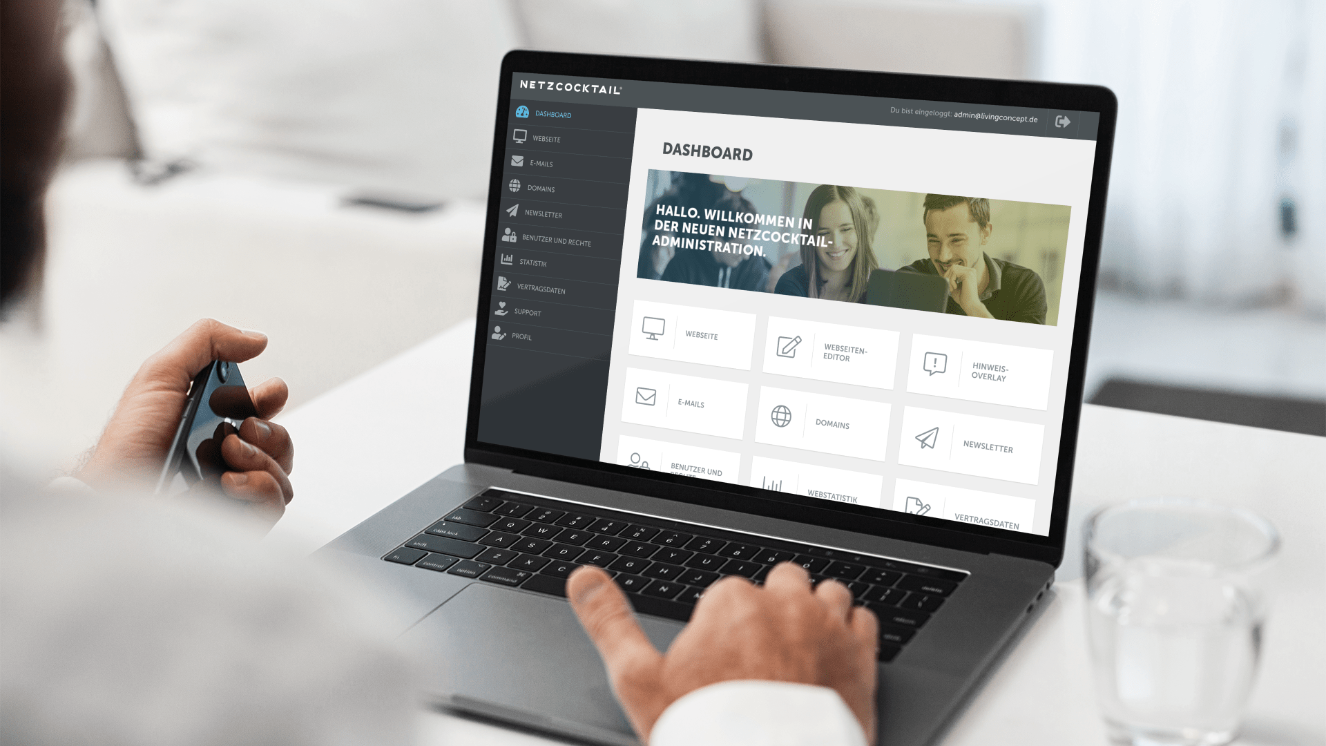 Das Content-Management-System von NETZCOCKTAIL verfügt über zahlreiche Funktionen, die es Ihnen ermöglichen, Ihren Internetauftritt jederzeit selbst zu bearbeiten – bequem von zu Hause aus am Computer oder unterwegs auf Ihrem Smartphone.