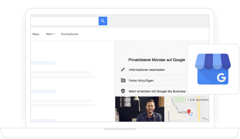 Wir erstellen Ihren My Business Eintrag, mit dem alle relevanten Informationen über Ihr Unternehmen in der Google-Suche und in Google Maps erscheinen.