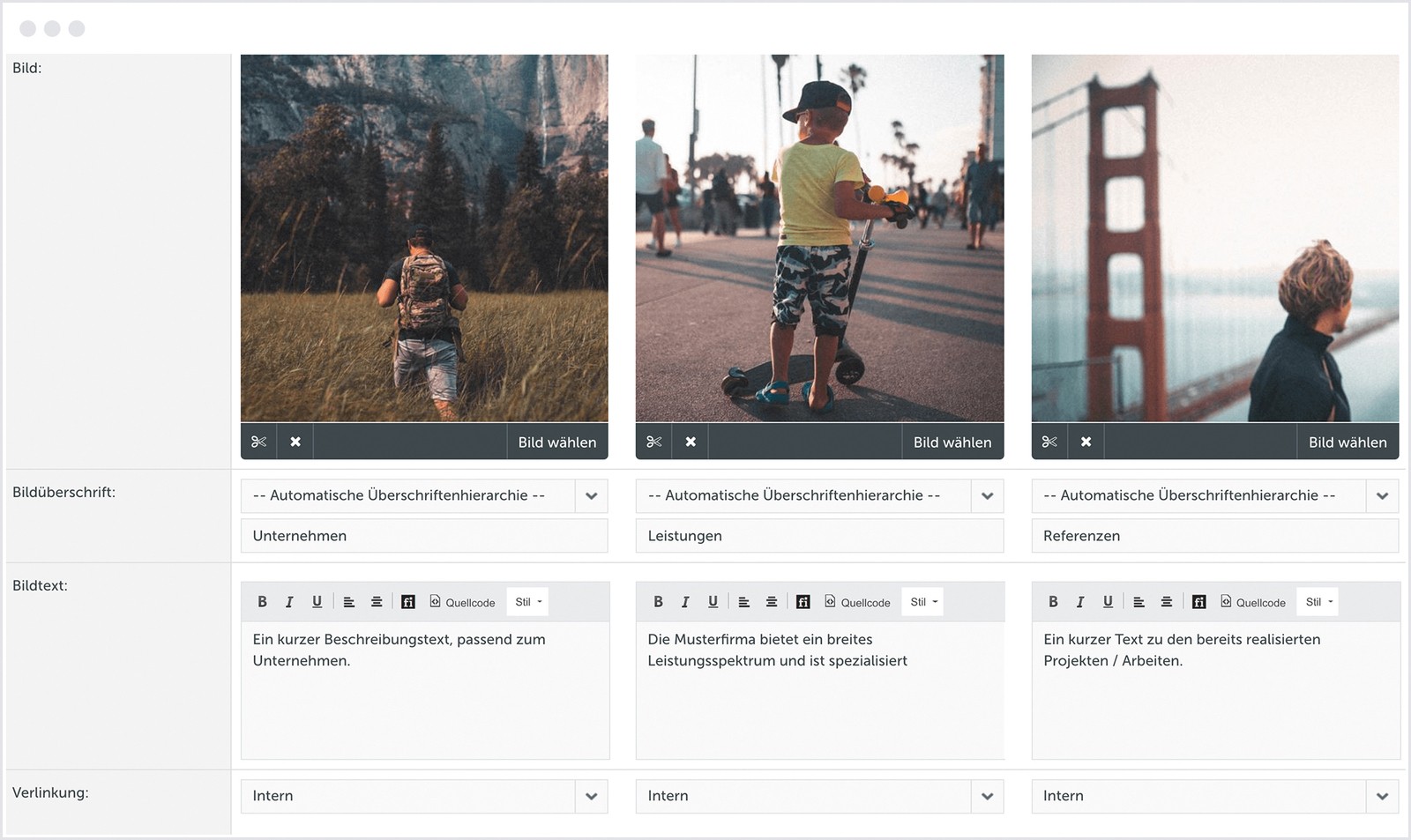 Abb.: Ein neues Interface Design für die Bearbeitung der Webseiten-Inhalte.