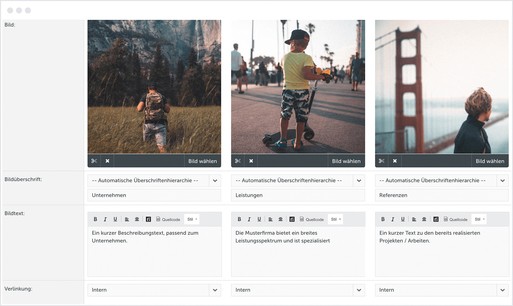Die "Allgemeinen Bausteineinstellungen" heißen jetzt "Darstellung" und sind zusätzlich über den Bearbeitenmodus der Bausteine erreichbar. Hiermit lassen sich, getrennt vom Inhalt, optionale Einstellungen für die Darstellung der Bausteine festlegen.