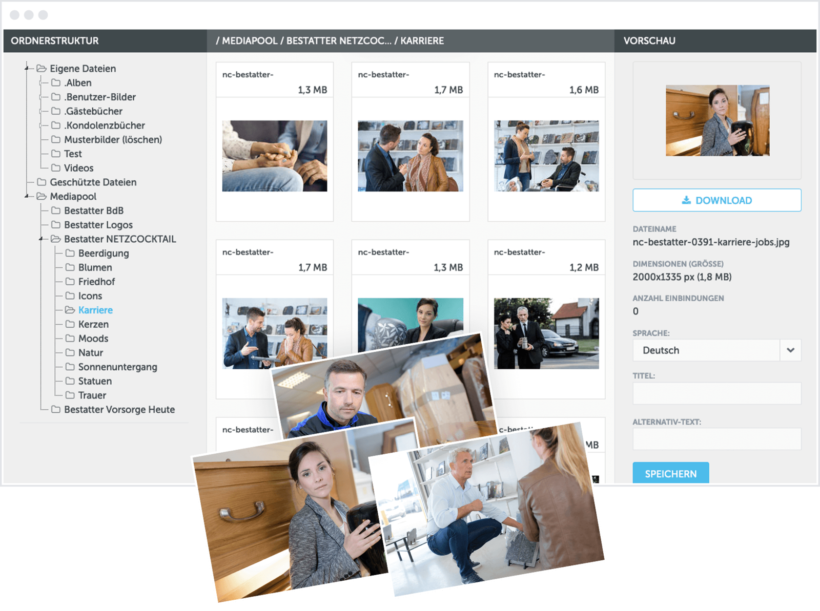 Allen Bestattern, die den NETZCOCKTAIL-Bilderpool gebucht haben, werden automatisch neue Bilder für den Bereich Karriere freigeschaltet.