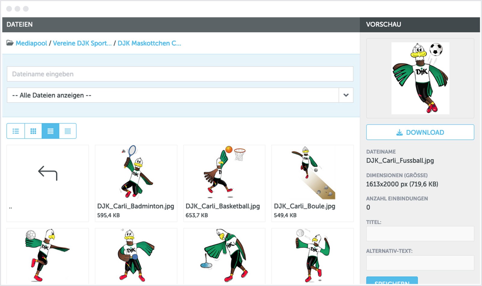 👉 Für die Freischaltung des DJK-Bilderpools meldet euch bitte bei unserem Service- und Support-Team, entweder telefonisch unter +49 251 625252-78 oder per Mail an service@netzcocktail.de
