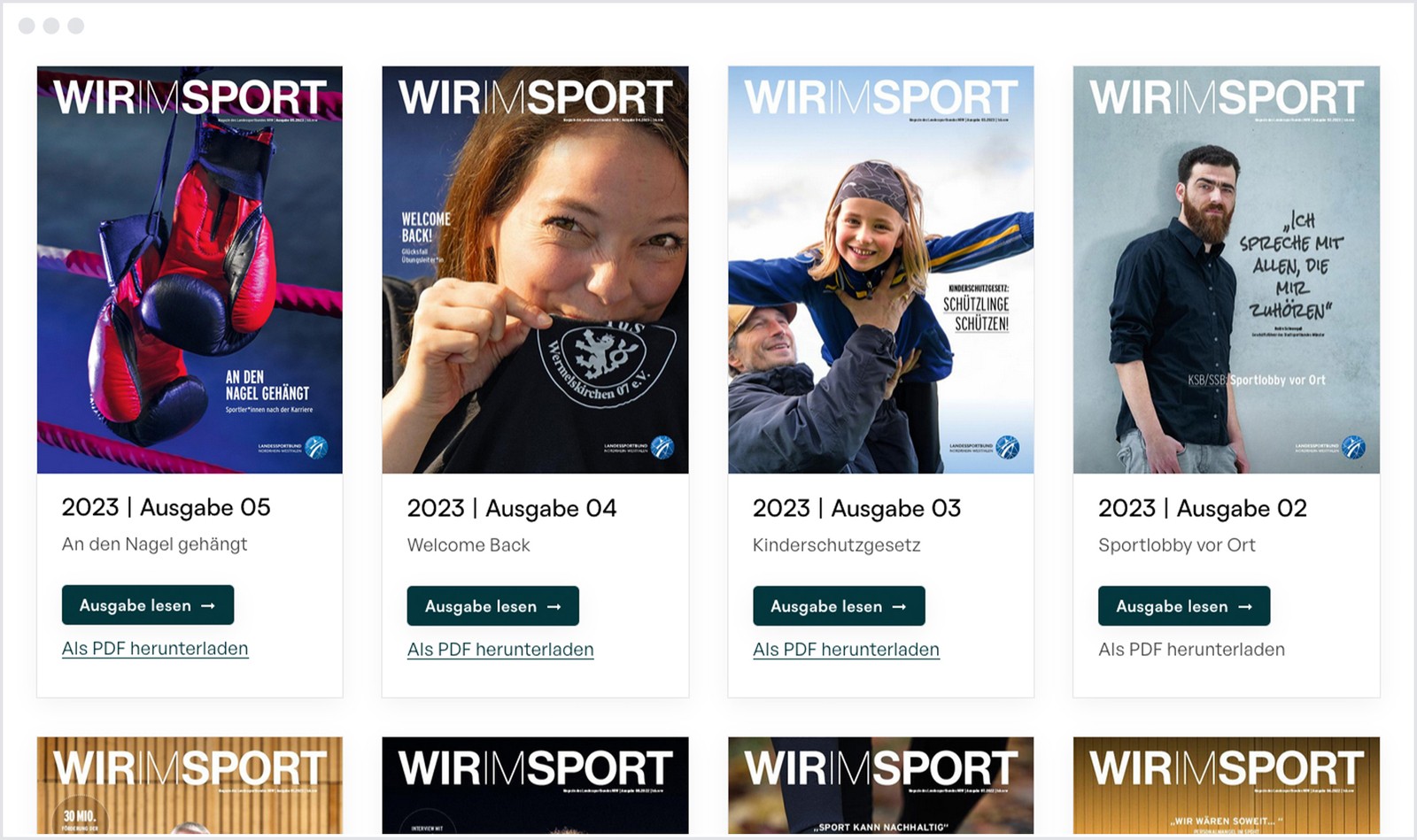In enger Zusammenarbeit mit den Landessportbünden Niedersachsen und Nordrhein-Westfalen haben wir einen Abo-Service für die Mitgliedermagazine entwickelt. Die Ausgaben werden ab sofort zentral über NETZCOCKTAIL gepflegt und automatisiert auf den Websites der Sportvereine und -verbände ausgespielt. Damit machen wir die Magazine online für alle Interssierten Leser*innen zugänglich.