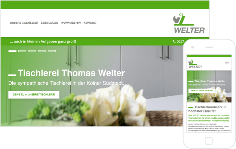 „Wenn es dann um die Lieferung von Texten, Bildern oder Infos geht, ist man natürlich schon angehalten, etwas zu tun – aber das sehe ich als sehr positiv. Wenn ich eine neue Webseite haben möchte, muss ich mich damit eben auch selbst beschäftigen. Da ist immer mal wieder so ein leichter Tritt in den Hintern gar nicht verkehrt. Umso schneller kommt man dann auch zu einem Ergebnis.“ Und von dem ist Thomas Welter überzeugt: „Die neue Seite ist nun vor allem technisch auf dem neuesten Stand und sieht sowohl auf dem PC als auch auf dem Smartphone echt gut aus.